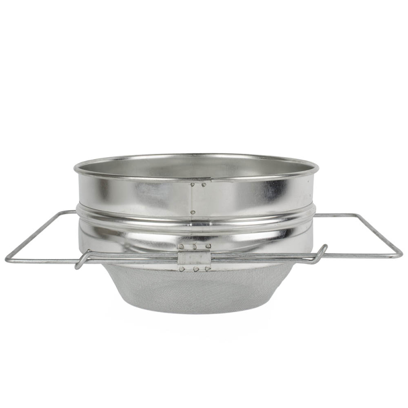 Praktické pocínované síto slouží k cezení medu při stáčení z medometu nebo při přelévání medu do nádoby. Zachytí zbytky vosku, víček a další nečistoty, které se mohou do medu dostat při vytáčení.