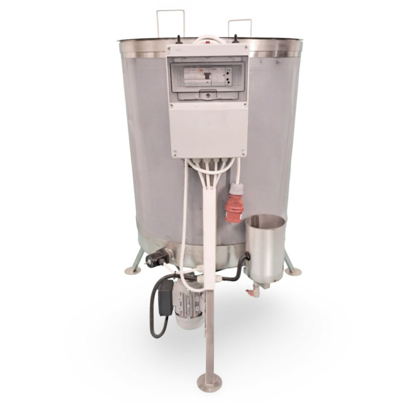 Elektrická rotační odstředivka z nerezové oceli se používá k získávání vosku ze včelích rámků nebo voštin pomocí parní metody.