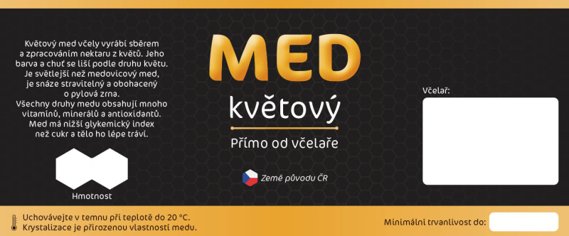 Etiketa je vizitkou každého včelaře a při prodeji medu ze dvora je povinná. Informuje zákazníka o všech potřebných náležitostech.
