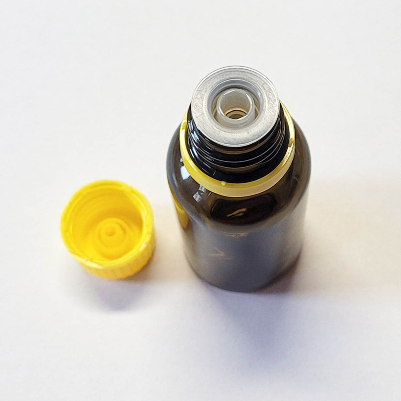 Tmavé sklo chrání obsah před světlem, kapátko umožňuje přesné a hygienické dávkování.