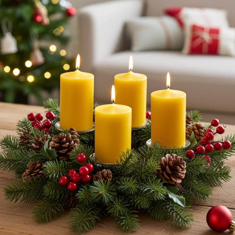 Svíčky z včelího vosku na adventní věnec - přírodní