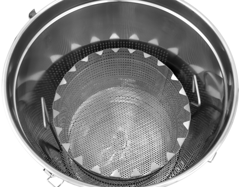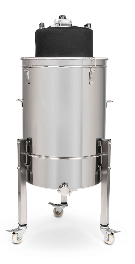 Profesionální zařízení k jednoduchému a zároveň šetrnému oddělení medu a včelího vosku pomocí topného tělesa pod víkem. Přídavný ventilátor zajišťuje rovnoměrné rozložení teploty v celé nádobě. Vložit můžete celé rámky nebo vyřezané dílo.