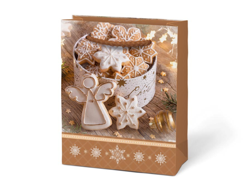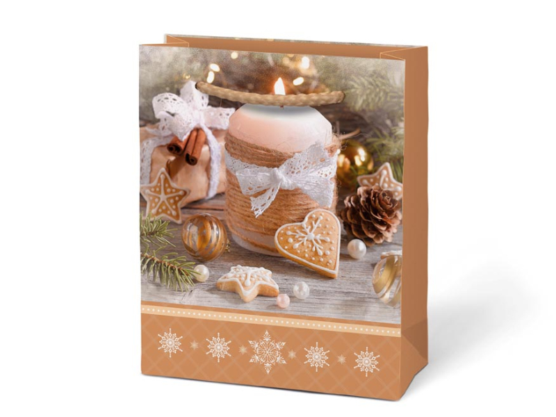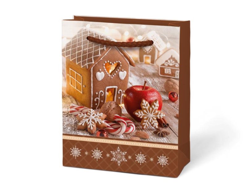 Vánoční dárková papírová taška s vánočními motivy je dokonalým spojením elegance a praktičnosti. Taška je vhodná na balení všech druhů dárků, od malých překvapení po větší předměty, a přidává jim kouzlo sváteční atmosféry. Je skutečně nepostradatelným pomocníkem, když se balení dárku do klasického balicího papíru zdá být příliš obtížné. Její robustní ucha zajišťují pohodlné a bezpečné přenášení.