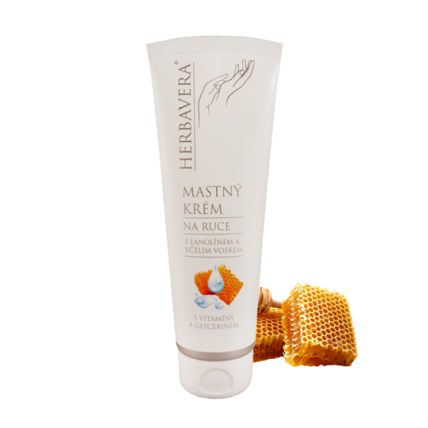 Mastný krém na ruce s lanolinem a včelím voskem Herbavera 120 ml
